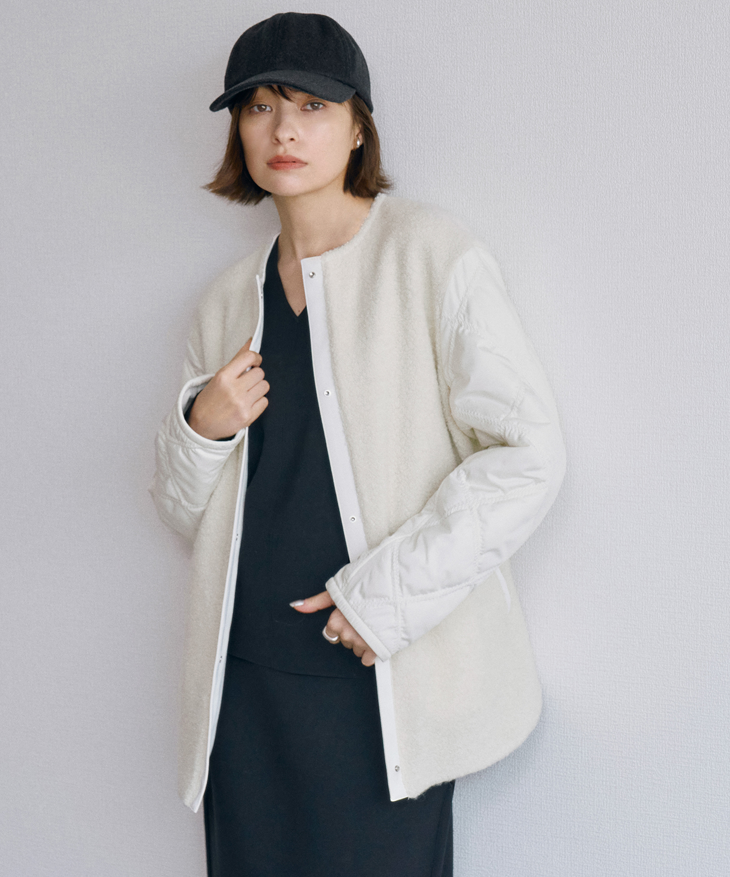 袖部分にダイヤモンドキルトを効かせた異素材コンビデザインは高級感があり、スポーティな印象を持ちつつ、アーバンなシルエットによって、ONでもOFFでも活躍してくれます。